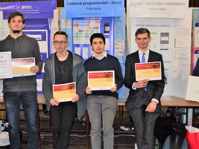 Pardubice, 8.-9.3.2018: Dva IT projekty postoupily do ústředního kola EXPO Science AMAVET 2018. Konkrétně maturitní projekt Daniela Krejčího Lovci Perel a potom projekt na výukové využití virtuální reality EduVR kluků z druháku, jmenovitě Karla Koudelky, Michala Špitálského, Martina Rohra a Jirky Falty.