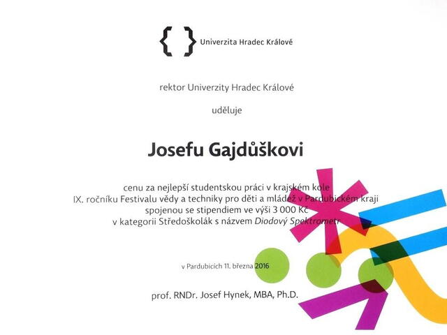 Michal s Pepou získali prestižní cenu Českého svazu vědeckotechnických společností a postoupili na mezinárodní soutěž do Pekingu Youth Science Creation Competition. Ve finále Expo Science AMAVET je doprovodili další dva projekty jejich spolužáků.