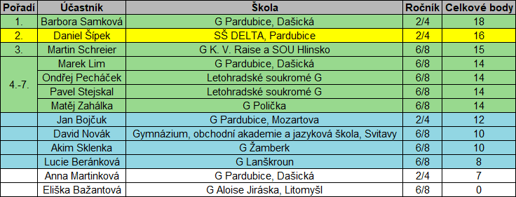 Když se něco stane jednou, může to být náhoda, „chyba měření“, opakování ale znamená trend. Tenhle stoupající trend na DELTĚ prokazuje Daniel Šípek, který se opět prosadil mezi dominantními gymnazisty a urval ve své kategorii B v nejvyšším – krajském – kole matematicky olympijské stříbro.