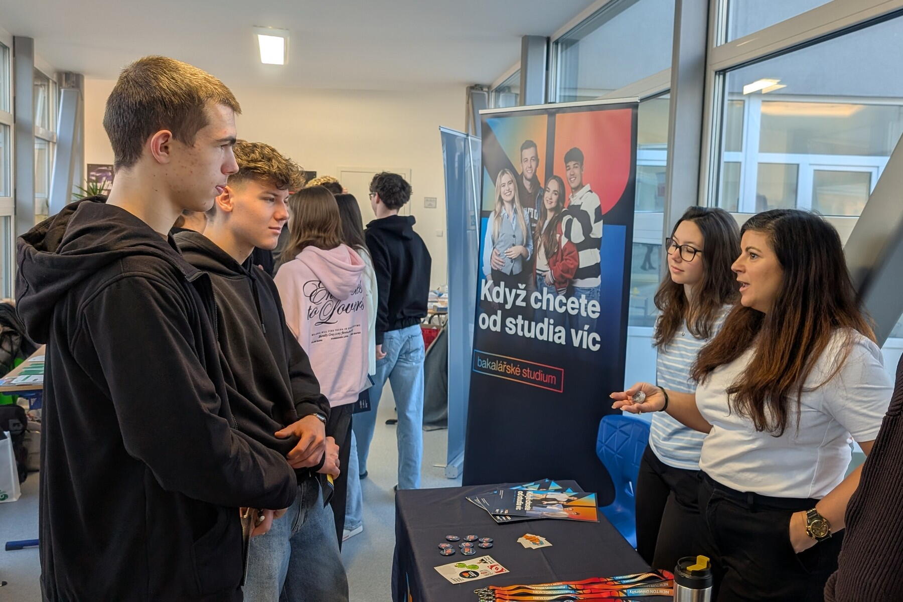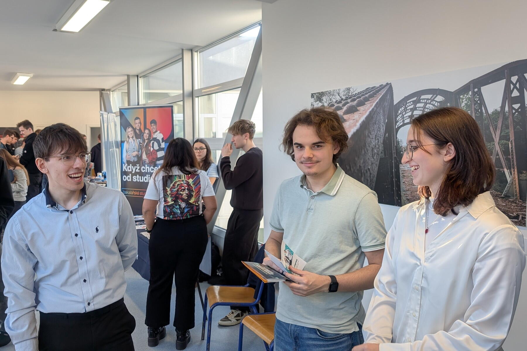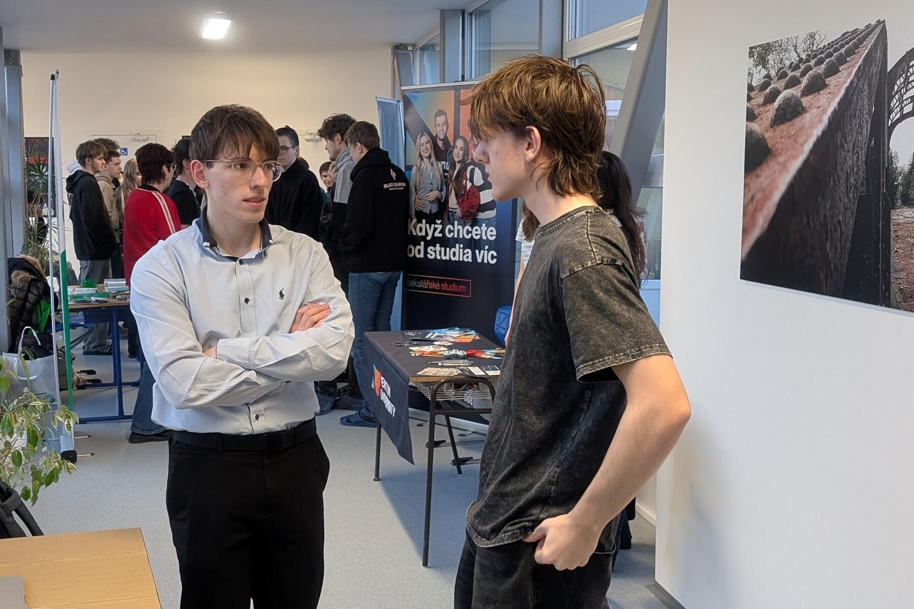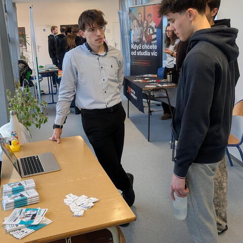 Setkání s vysokými školami pořádala DELTA už počtvrté, letos jsme ale po zkušenostech minulých let vsadili téměř výhradně na domácí půdu a naše absolventy. V prostorách školy tak vzniklo 12 stánků, na kterých se nejprve čtvrťáci a potom třeťáci potkali s o něco staršími spolužáky, kteří jsou dnes na vysokých školách, a vyprávěli jim o té svojí..