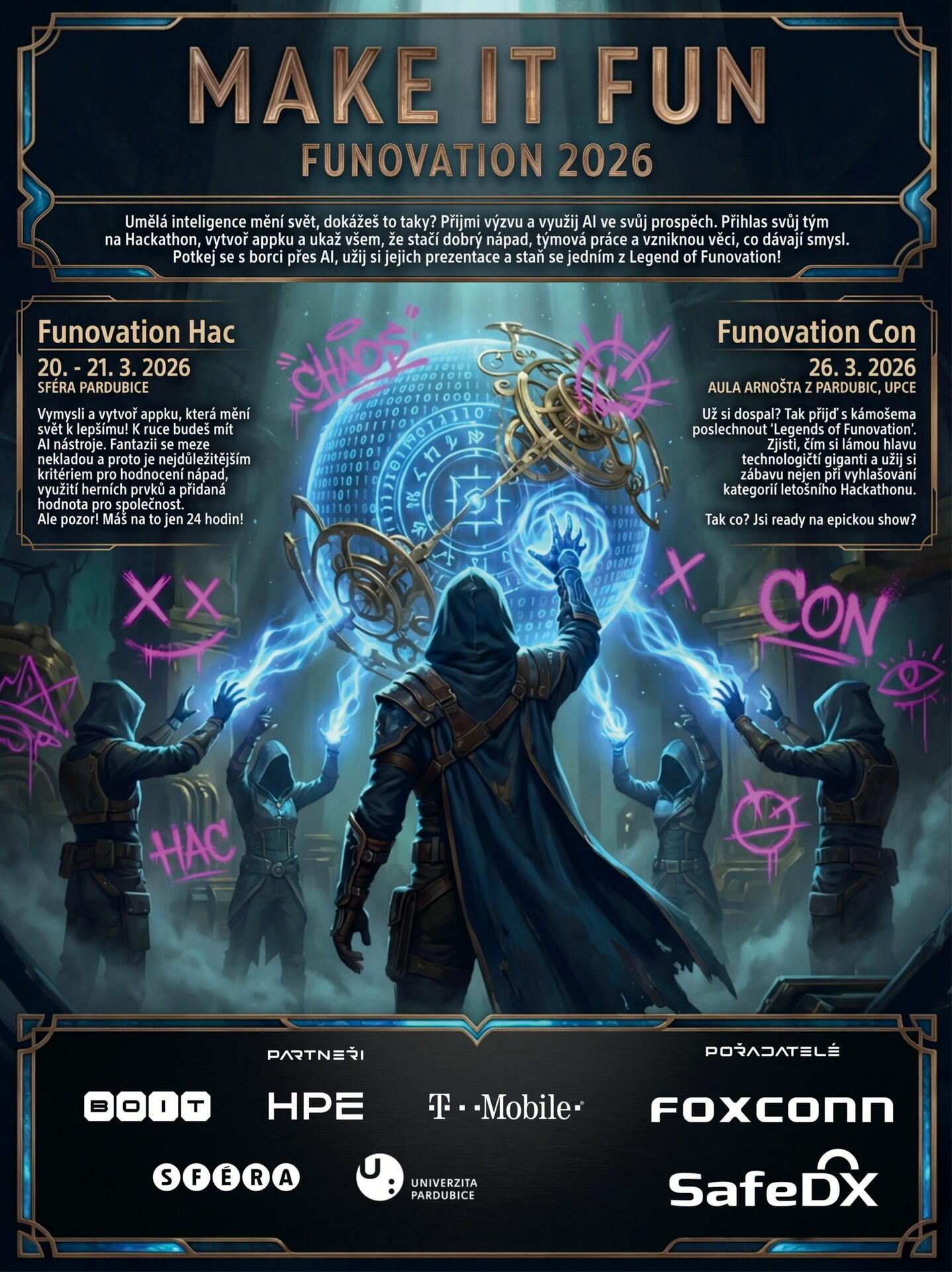 O Foxconním hackathonu už nemusíme asi mluvit, letáčky jsou ve třídách a dole na nástěnce, nejméně dva týmy už se zaregistrovaly. Kdyby někdo nevěděl, kde hledat, pak to správné místo je https://www.foxconn.cz/funovation26.