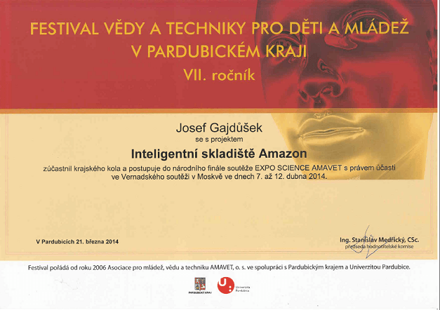 - 2 projekty postupují do národního finále EXPO SCIENCE AMAVET 2014 (Josef Gajdůšek a Kateřina Kopcová).