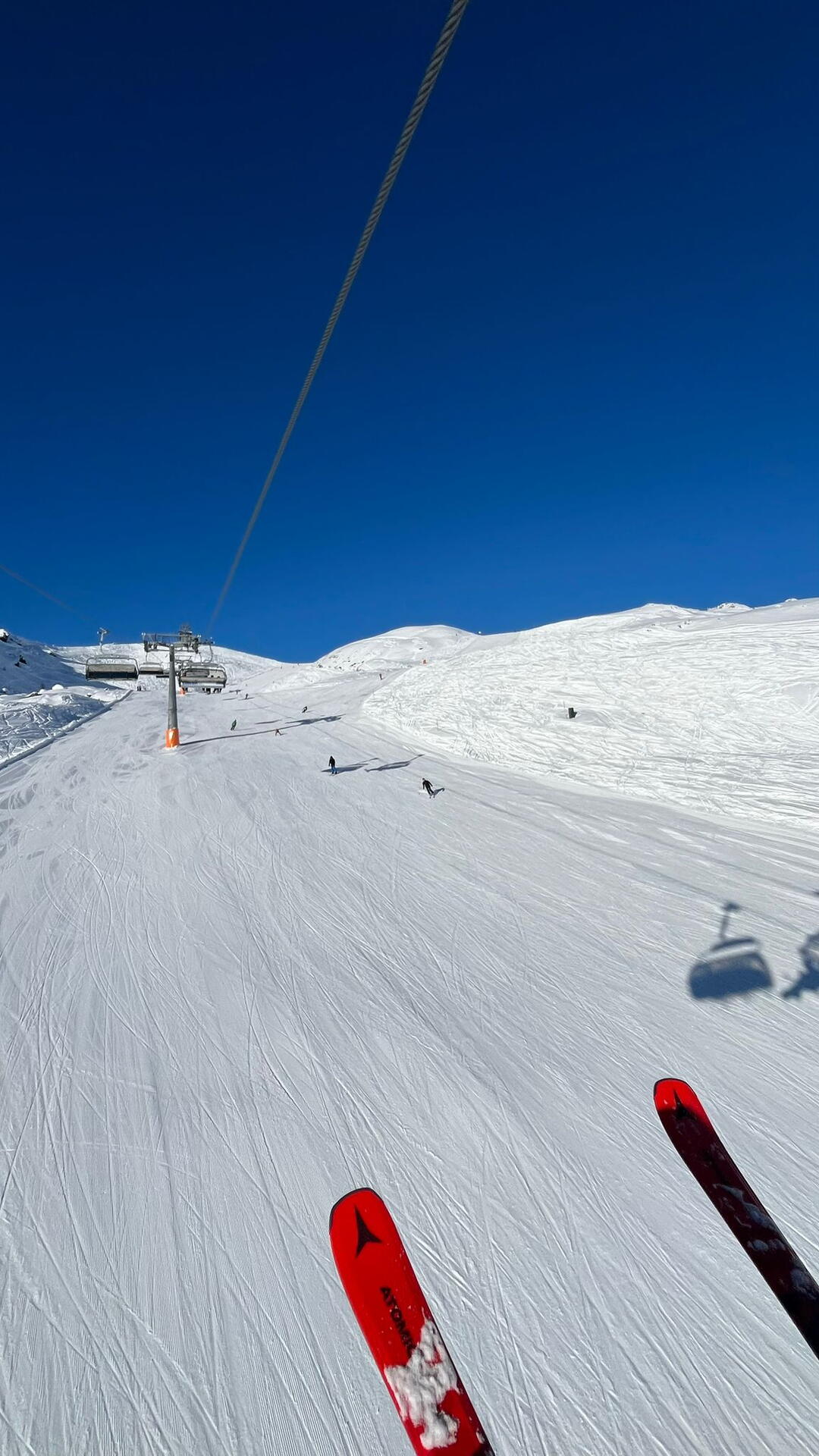 Budíček byl brzký. Snídaně v 7:00, odjezd v 7:45 a plán být mezi prvními na lanovce. Na minuty přesně to sice nevyšlo, ale i tak jsme si užili téměř prázdné svahy.