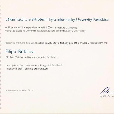 - zvláštní cena děkana Fakulty elektrotechniky a informatiky Univerzity Pardubice,
