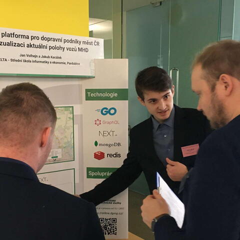 Mezi třicítku nejlepších projektů z ČR se do celostátního finále Expo Science AMAVET probili také spolužáci s čistě softwareovými projekty Jan Volhejn a Jakub Kacálek s projektem "Internetová platforma pro dopravní podniky měst ČR pro vizualizaci aktuální polohy vozů MHD" a Martin Dobruský s "Gamifikace problematiky kybernetické bezpečnosti". Všem budeme držet pěsti do další soutěže - Středoškolské odborné činnosti, jejiž krajské kolo se koná již 25. dubna.
