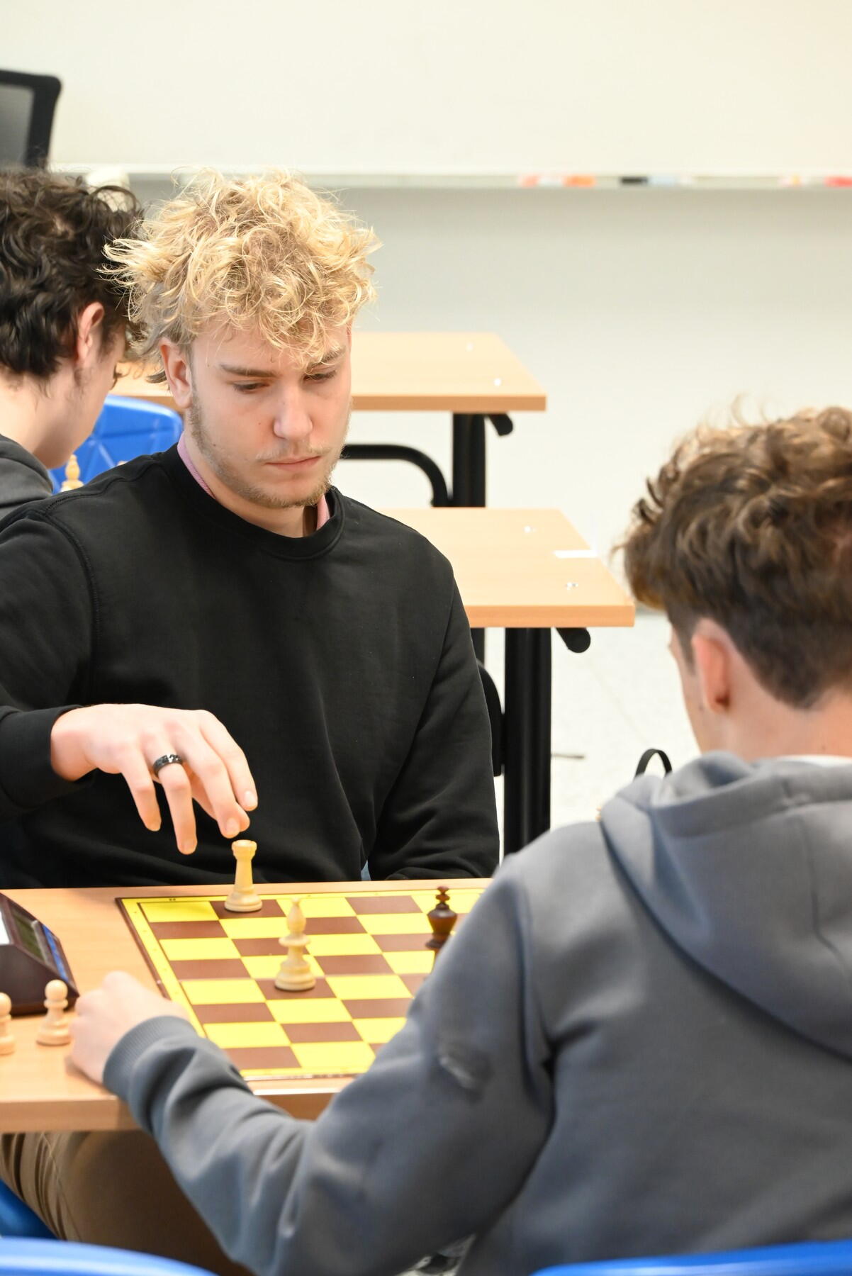 Letos to s turnajem vůbec nebylo jisté. Program byl nabitý, kulturní akce se vršily a šachy to prostě měly nahnuté. Jenže pak se stalo něco, co máme rádi: studenti si o turnaj sami řekli, no tak jim ho neuspořádejte. Třetí ročník se tedy konal – a atmosféra byla přesně taková, jak má být: soustředění, ticho přerušované jen cvakáním hodin… a občas taky zoufalé zavytí nebo výbuch smíchu.